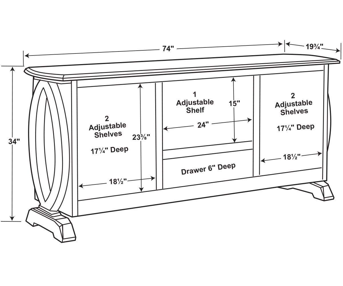 Dimensions: 74″W x 19¾”D x 34″H